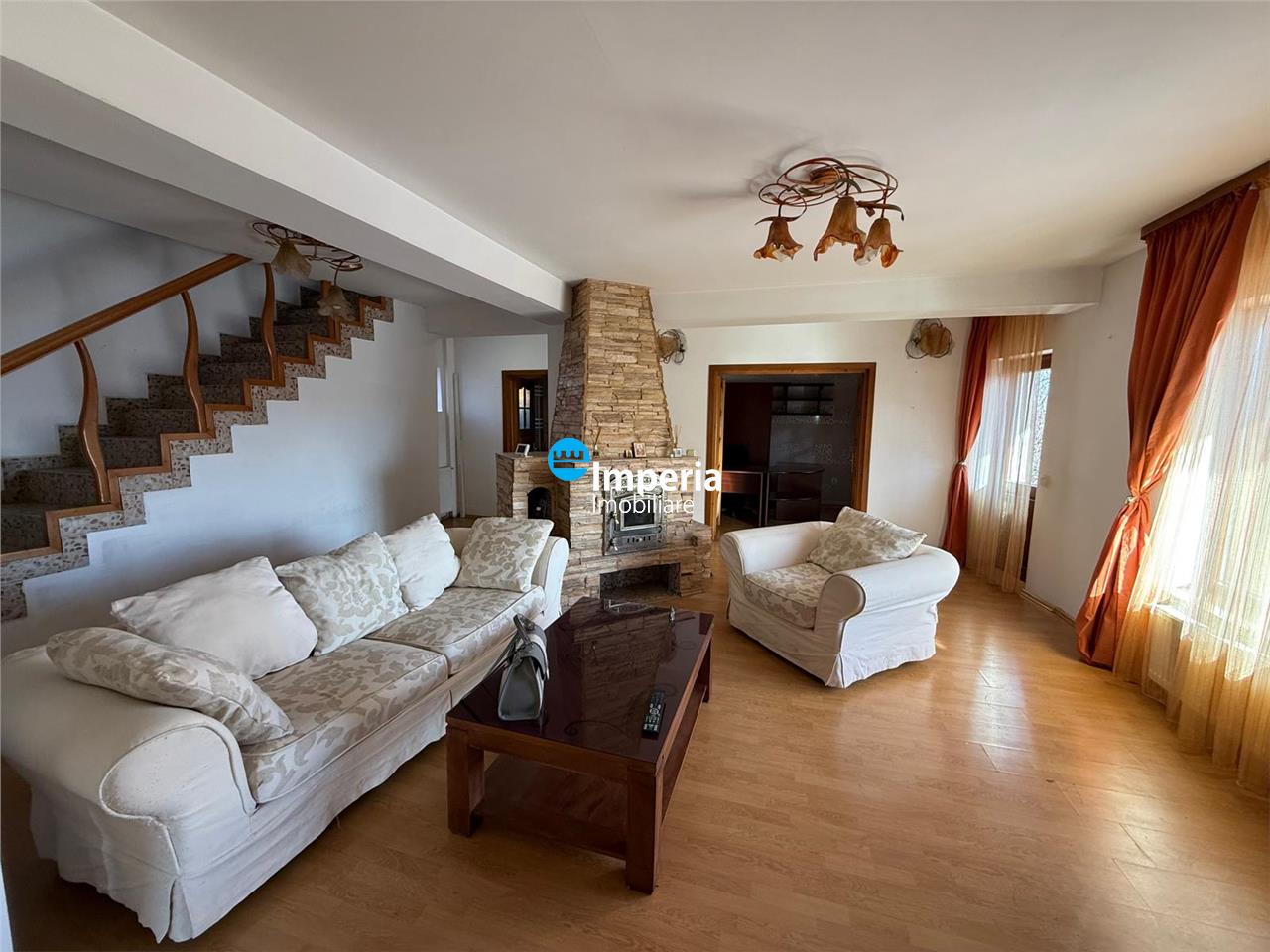 Casa beneficiaza de finisaje medii, cu gresie, faianta si parchet, iar tamplaria interioara si exterioara este realizata din lemn masiv, oferind un aspect elegant si durabil. Proprietatea se inchiriaza complet mobilata si utilata, fiind pregatita pentru mutare imediata.