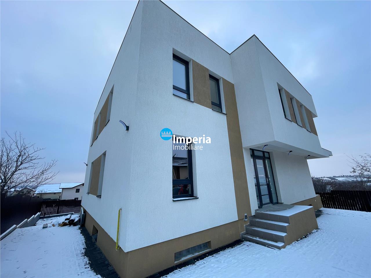 La interior casa a fost amenajata si personalizata cu ajutorul unui specialist, amenajata cu materiale de o calitate superioara,scari interioare beton armat ,incalzire in pardoseala dispusa separat pe fiecare nivel(D-P-Et 1),centrala termica prin condensare marca Viessmann de 32 kw,sistem de distribuitori cu pompa de amestec pe fiecare nivel,termstate de ambianta zonale, geamuri termopan in 3 foi de sticla cu tamplarie marca Salamander culoare gri antracit, glafuri interioare si exterioare , terasele placate cu gresie antiderapanta de exterior,curte interioara si zona de parcare amenajata cu paviment marca Simetrica,etc